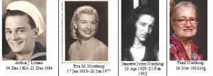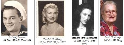 Jerry's grandmother Maggie's children. from Left: Arthur Lyman, Jerry's father, Northrup girls, Eva, Jeanette and Pearl. Arthur and Northrup girls were half siblings.